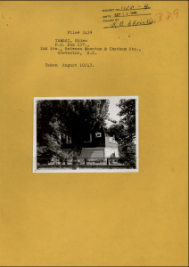Killing of Home: The property form in the case file will tell you where they lived in the “protected area”, whether their residence was owned or rented, and a number of other things. I was shocked to learn that my Jii-chan, Hideo Tamaki, had this house built when he was just 21 on land his widowed mother, a midwife at the Fisherman’s Hospital, had purchased for him. When he married my Baa-chan, Fumi (nee Akiyama), a decade later in 1941, they lived in this house on 2nd Ave, near Chatham, in Steveston, that was sold by the Office. My grandfather filed a claim through the Bird Commission and the report contains the court record of my grandfather’s testimony and itemized list of things that were left behind –pots and pans, a 29-piece tea set, pruning shears, records and a record player, table cloths, window curtains, and the list goes on. As newlyweds, it must have been heartbreaking to leave it all behind and have to restart again in Manitoba so soon after beginning their life together. The property form also showed that my Jii-chan had purchased a War Savings Certificate and Victory Bonds, to help Canada fund the war that caused the government to force them from their home.